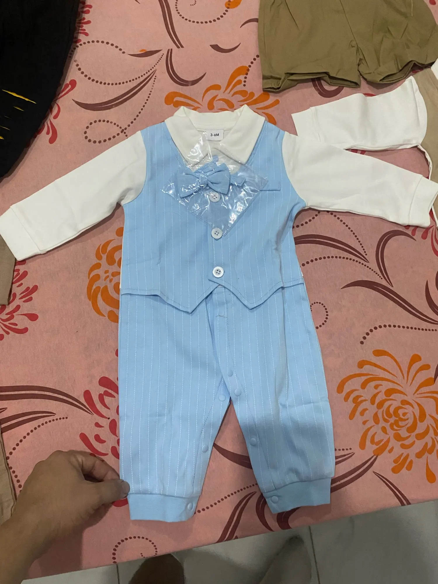 This baby boy jumpsuit features a charming design tailored for both casual outings and special occasions. With its elegant blue color, smart collar, and attached bow tie, your little gentleman will be ready for any adventure. Whether it’s a family gathering, birthday party, or a day out, this jumpsuit ensures he is always dressed to impress.