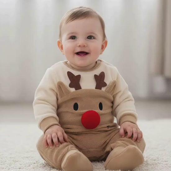 Adorable Reindeer Baby Jumpsuit - Cozy Gender Neutral Outfit for Festive Holidays