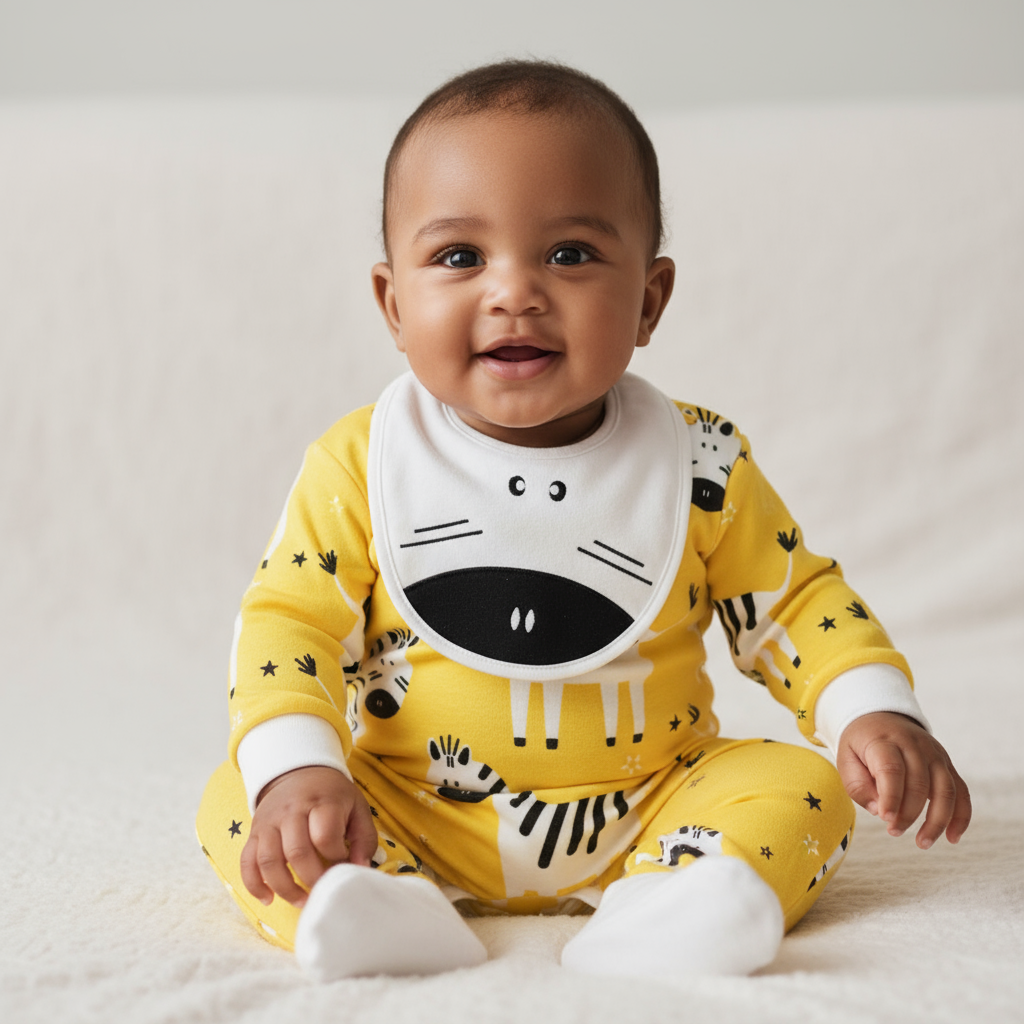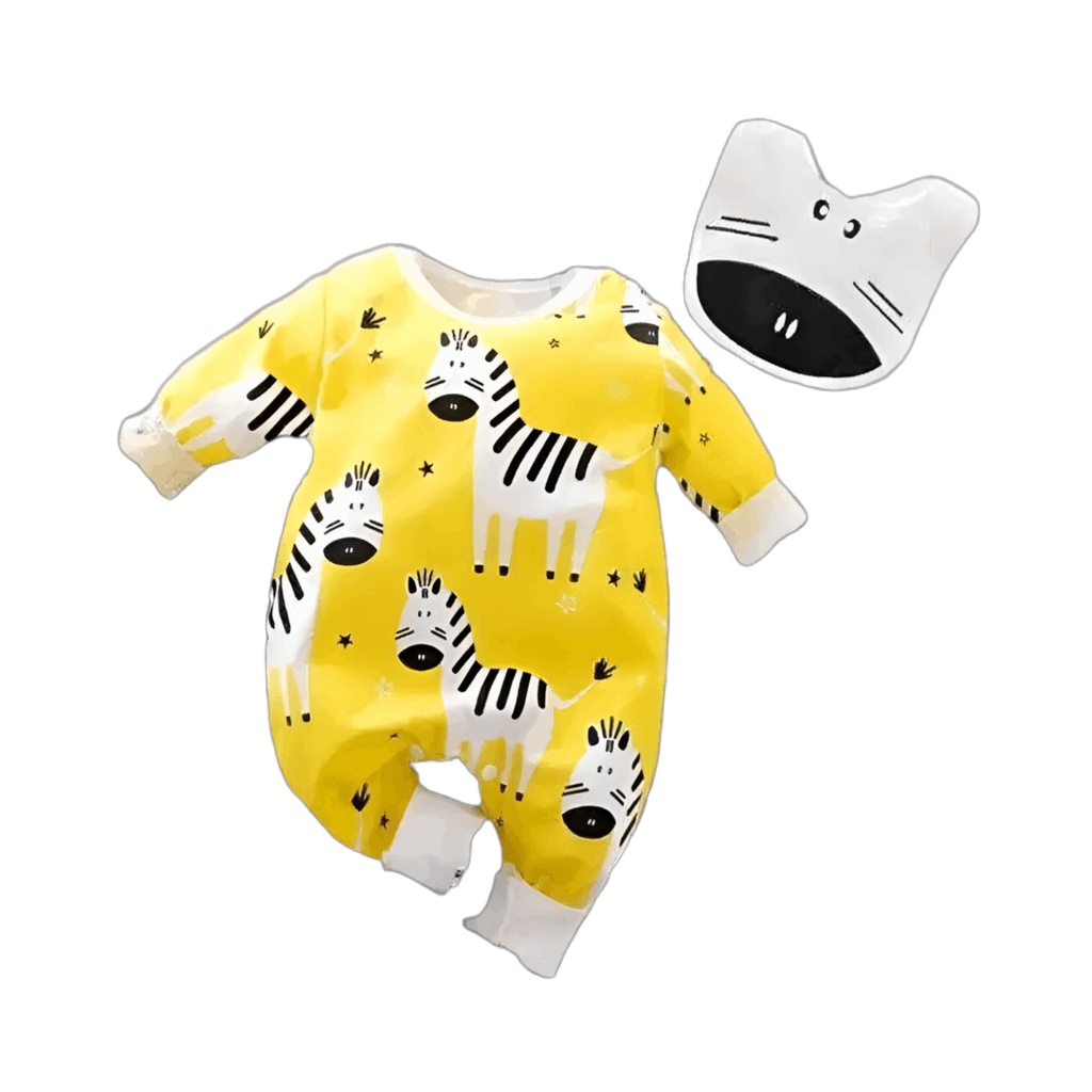 Baby Zebra Jumpsuit With Matching Bib - Cozy Unisex Yellow Outfit For All Day Fun